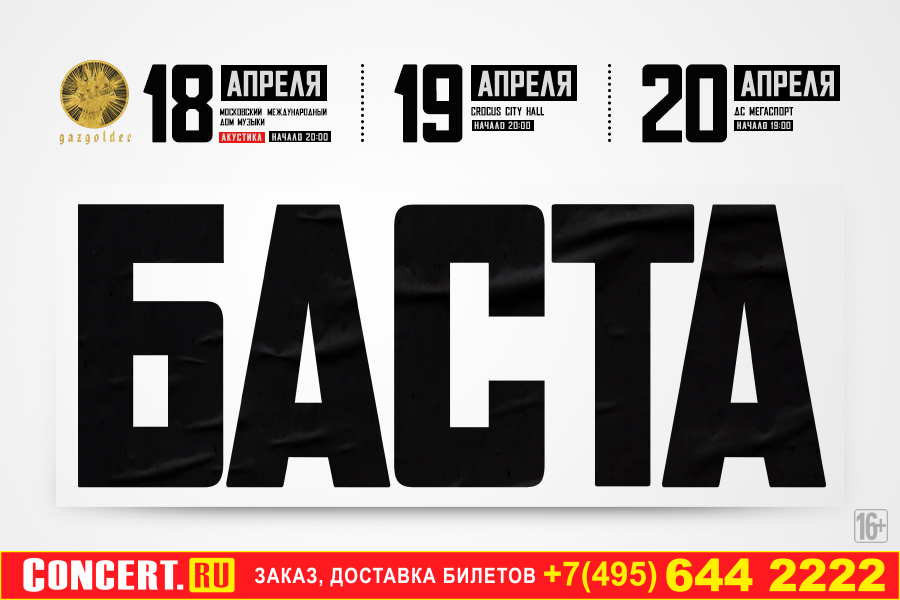 18.04 - Московский Международный дом Музыки 19.04 - Крокус City Hall 20.04 - ДС «Мегаспорт» Успей забронировать лучшие места!